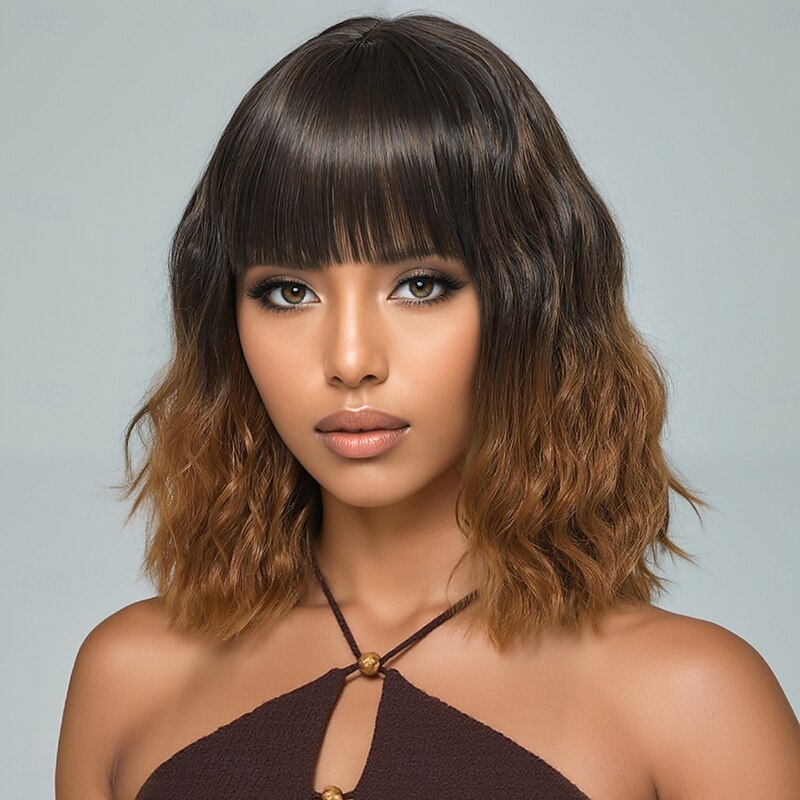 $21.99 - Synthetic Wig Curly Loose Curl Asymmetrical Neat Bang Machine Made Wig 16 inch A1 Synthetic Hair Women's Cute Classic Comfortable Dark Brown 2025. Shop for cheap Synthetic Trendy Wigs online? Buy at lightinthebox.com on sale today!