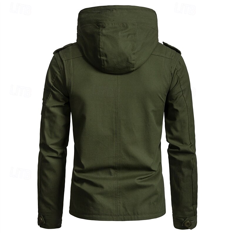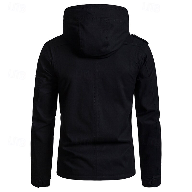 Men's Peacoat Trench Coat Vacation Daily Fall Winter Cotton Blend Thermal Warm Outerwear Clothing Apparel Fashion Classic Plain Pocket Hooded Zipper 9