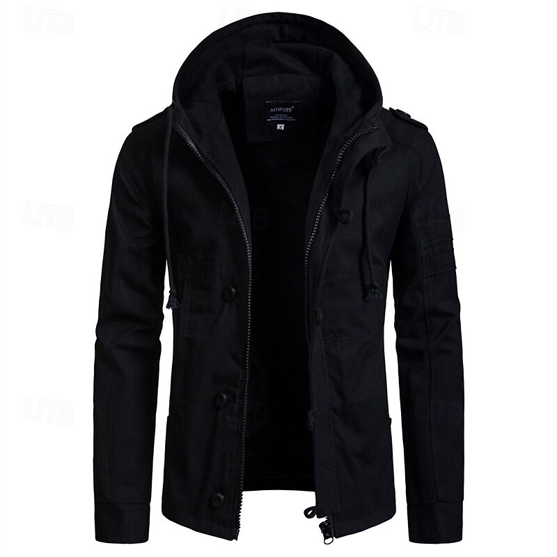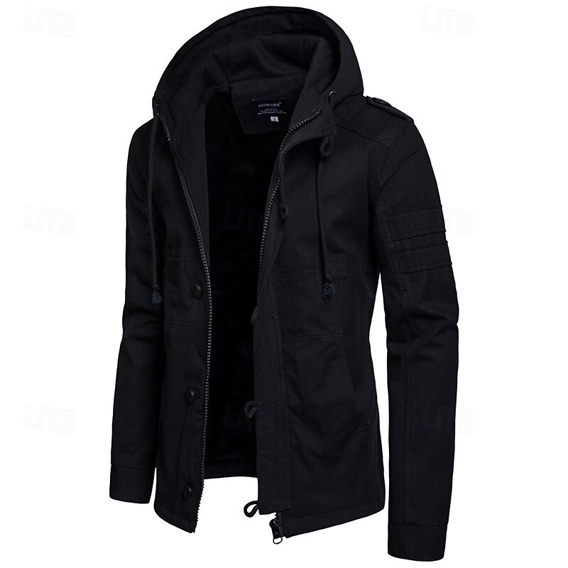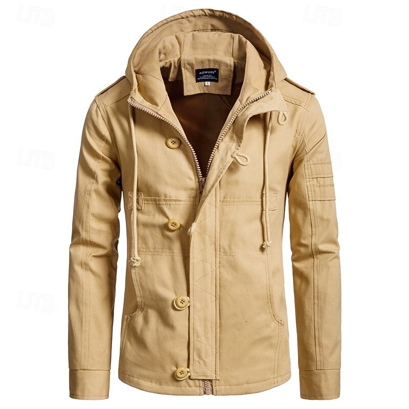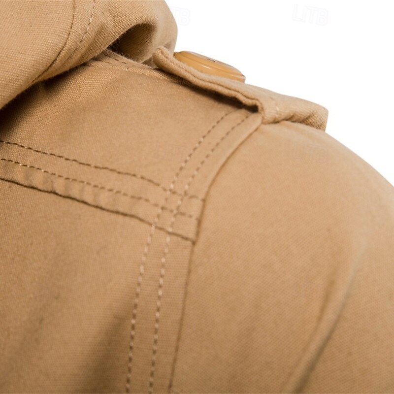 More information about Men's Peacoat Trench Coat Vacation Daily Fall Winter Cotton Blend Thermal Warm Outerwear Clothing Apparel Fashion Classic Plain Pocket Hooded Zipper
