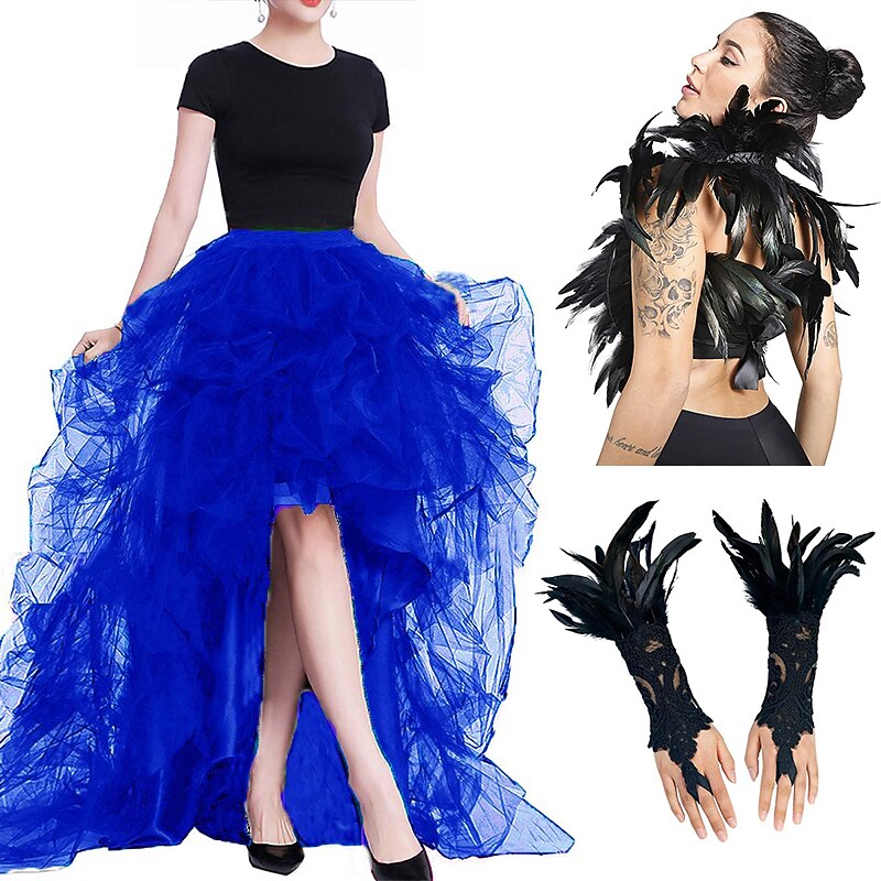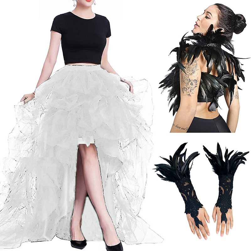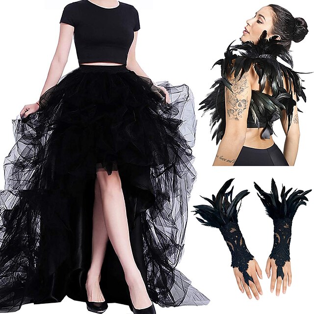 $55.99 - Set with Tulle Tutu Skirt Feather Cape Lace Gloves 3 PCS Women's High Waist High Low Layered Tulle Floor Length Skirt Feather Shawls Outfits Maleficent Costume Punk Gothic Halloween Party Carnival 2025. Shop for cheap Outfits online? Buy at lightinthebox.com on sale today!