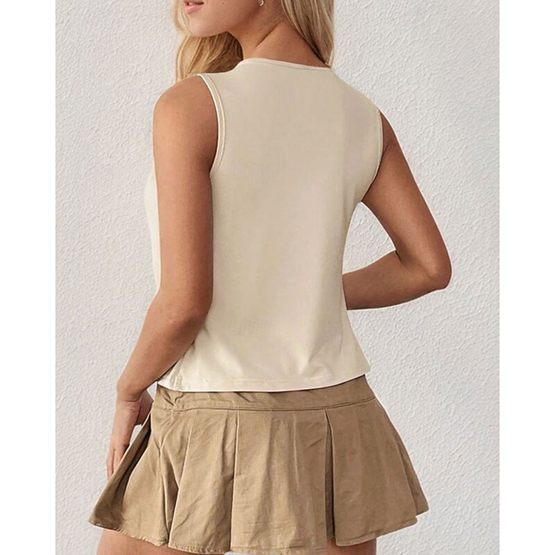 HOT ! Women's Blouse Plain Modern Casual Sleeveless Crew Neck Regular Tops Daily Holiday Cut Out Apricot Summer