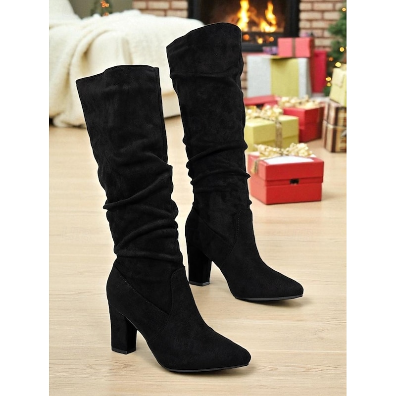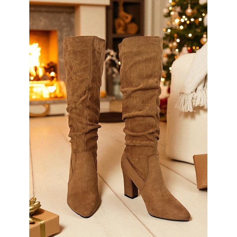 Women's Red Suede Slouch Knee High Boots with Block Heels, Chic Winter Fashion Footwear for Christmas Parties, Holiday Outfits & Daily Wear 25