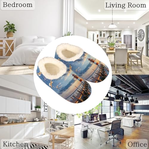 Sunset Lighthouse House Slippers for Women Men, Sea Seagull Fuzzy Soft Cozy Non Slip Slipper Socks 6