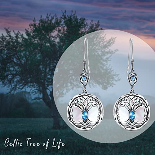 Celtic Tree of Life Earrings Sterling Silver Family Tree Dangle Drop Earrings with Birthstone Crystals, Birthday Jewelry Gifts for Women Her 5