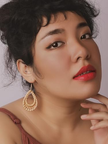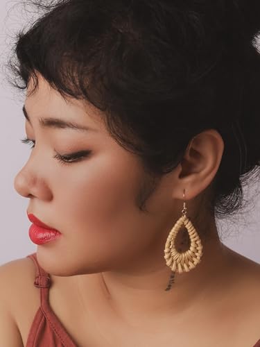 • UNIQUE HANDCRAFTED DESIGN: These earrings boast a teardrop shape with intricate rattan weaving, reflecting exceptional craftsmanship and a distinctive boho chic style.