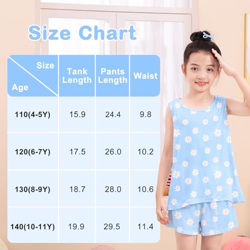 ICOSY Girls Pajamas 2 PCS Kids Pajamas Tank Tops and Shorts Clothes for Toddler Girls Size 8-15 4
