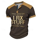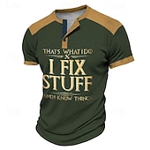 Funny Slang I Fix Stuff Men's Street Style 3D-print Henley Shirt Waffle T Shirt Street Sports Outdoor Casual T shirt Black Dark Green Brown Short Sleeve Henley Shirt Spring & Summer 13