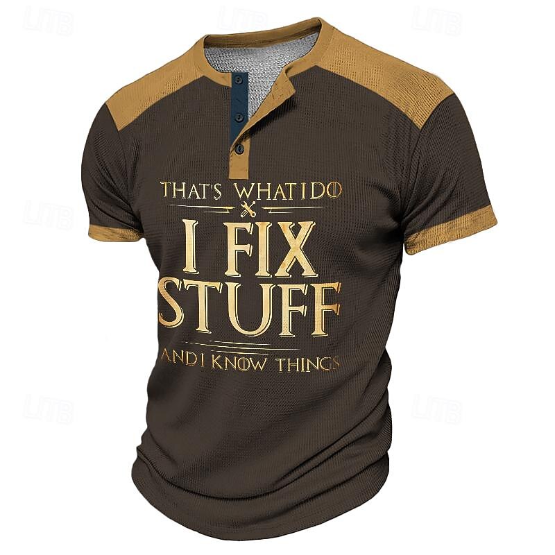 HOT ! Funny Slang I Fix Stuff Men's Street Style 3D-print Henley Shirt Waffle T Shirt Street Sports Outdoor Casual T shirt Black Dark Green Brown Short Sleeve Henley Shirt Spring & Summer