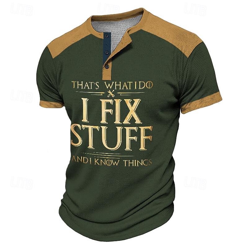 More information about Funny Slang I Fix Stuff Men's Street Style 3D-print Henley Shirt Waffle T Shirt Street Sports Outdoor Casual T shirt Black Dark Green Brown Short Sleeve Henley Shirt Spring & Summer
