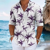More information about Men's Palm Tree Summer Hawaiian Shirt Aloha Shirt Long Sleeve Hawaiian Beach Vacation Summer Spring Turndown Button Up Blue Purple Green