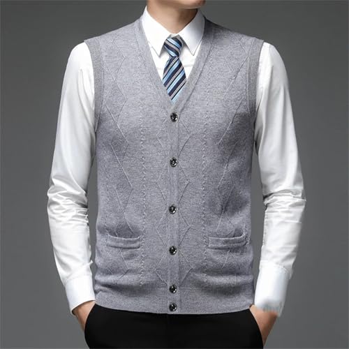 Men's V-Neck Knitted Sweater Vest Sleeveless Plain Solid Pullover Casual Waistcoat for Fall Fashion 7