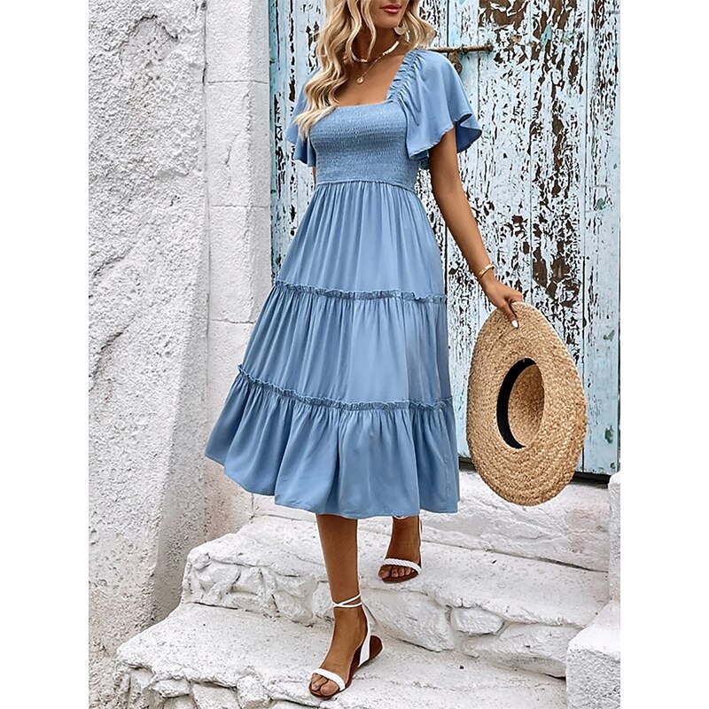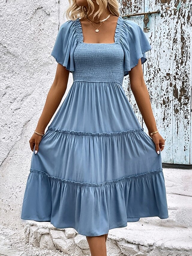 This Women's Midi Dress Casual Dress Swing Dress A Line Dress fashionable Basic Casual Vacation Daily Regular Fit Plain Short Sleeve Square Neck Blue Summer combines elegant design with practical functionality. Every detail has been carefully considered to ensure you get the best possible experience. The excellent construction means this product will serve you well for years to come.