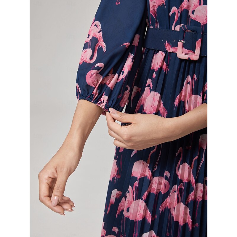 Women's Female Casual Dress Pink Flamingo Summer Fall Cross-Seasons Round Vacation XS S M 9
