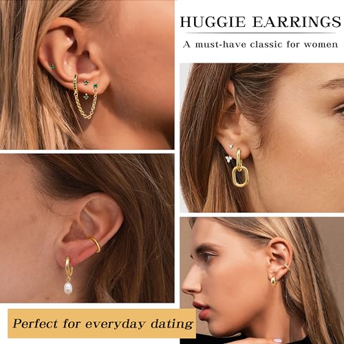 • 【Perfect Gift Choice】Present the perfect present with our elegantly packaged gold earrings for women. Hypoallergenic and comfortable gold plated stud huggie earrings are suitable for both women and men. Gold earrings set is a wonderful gift for your friend or family on Christmas, Birthday, Mother's Day, Valentine's Day, New Year, Party, Anniversary, etc. Express your most sincere love to them!