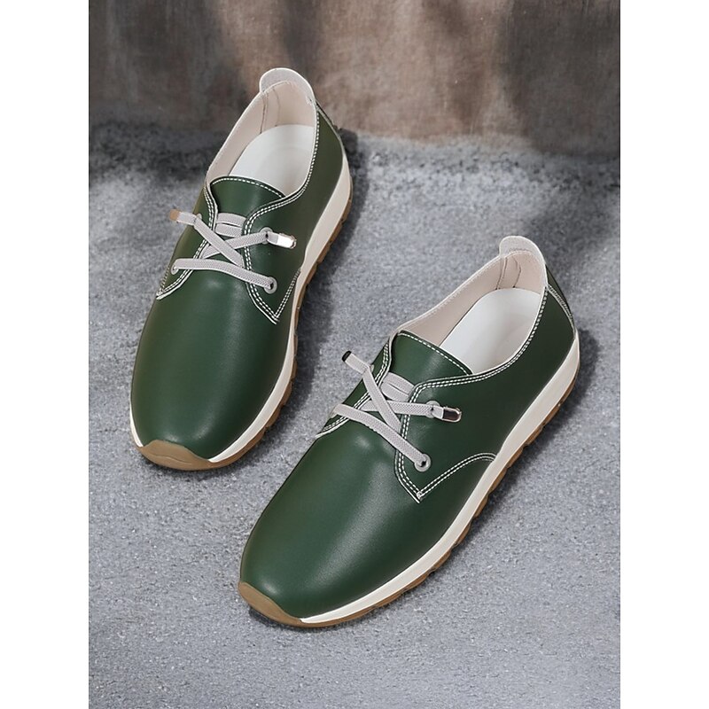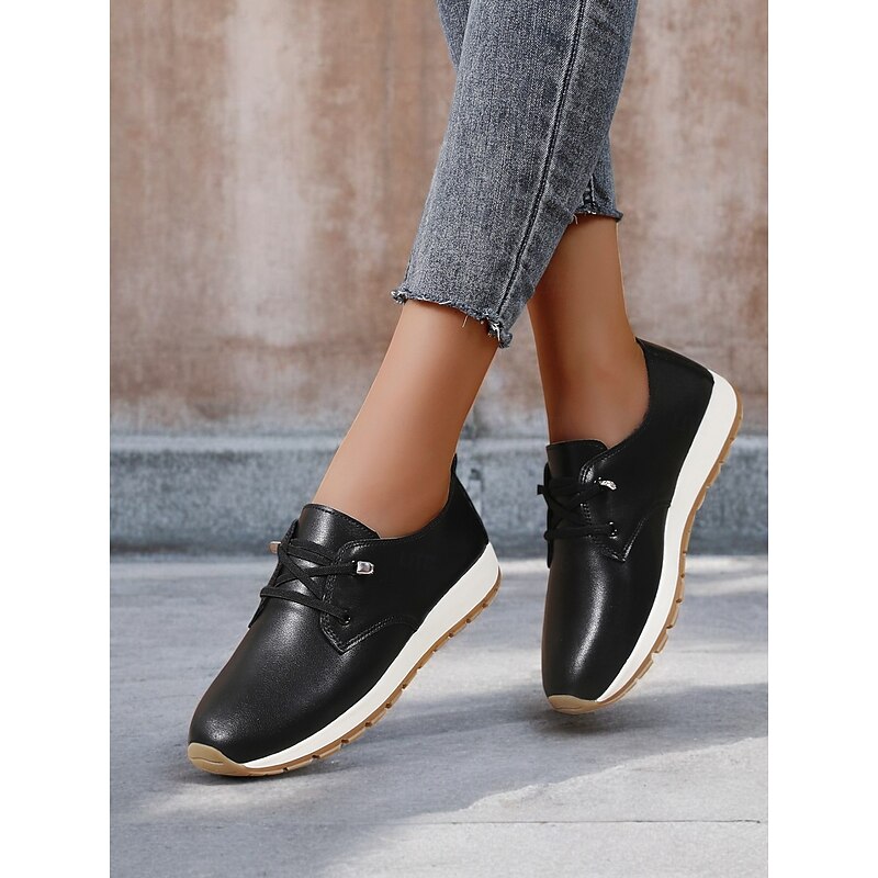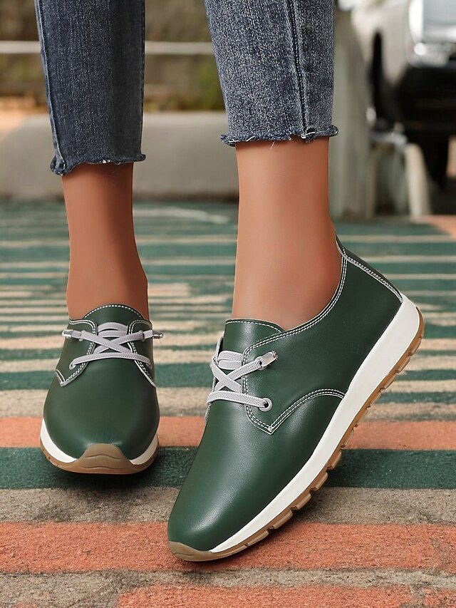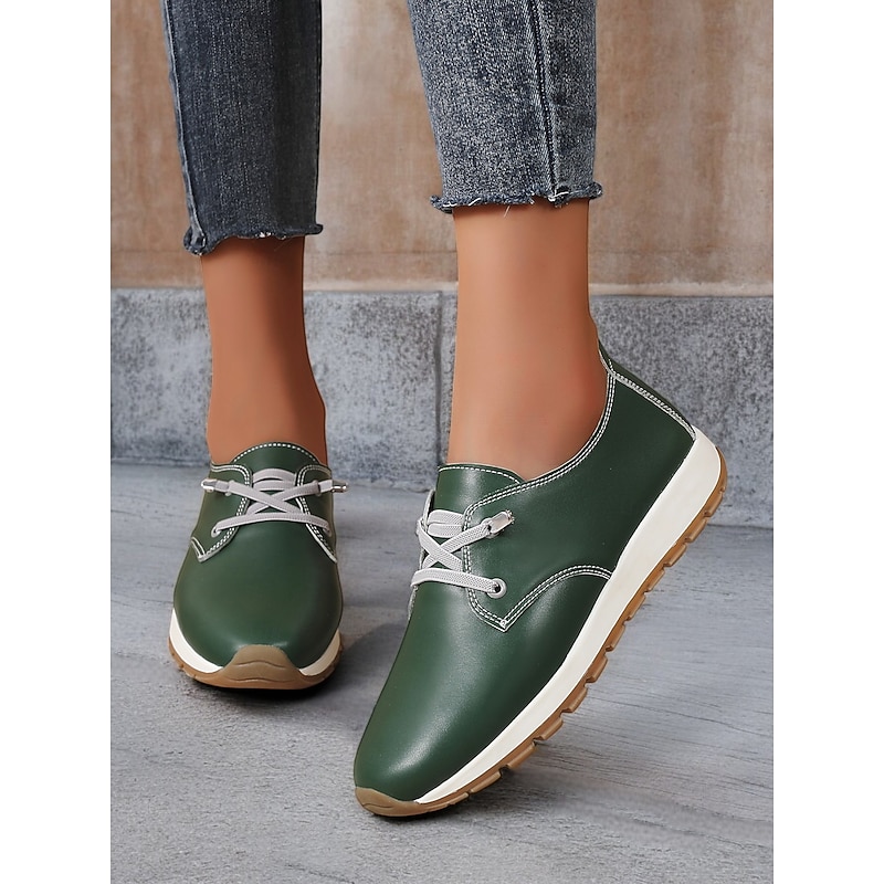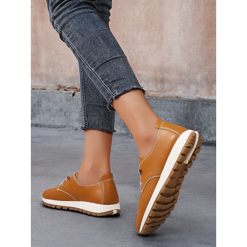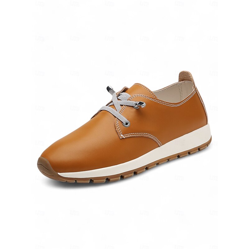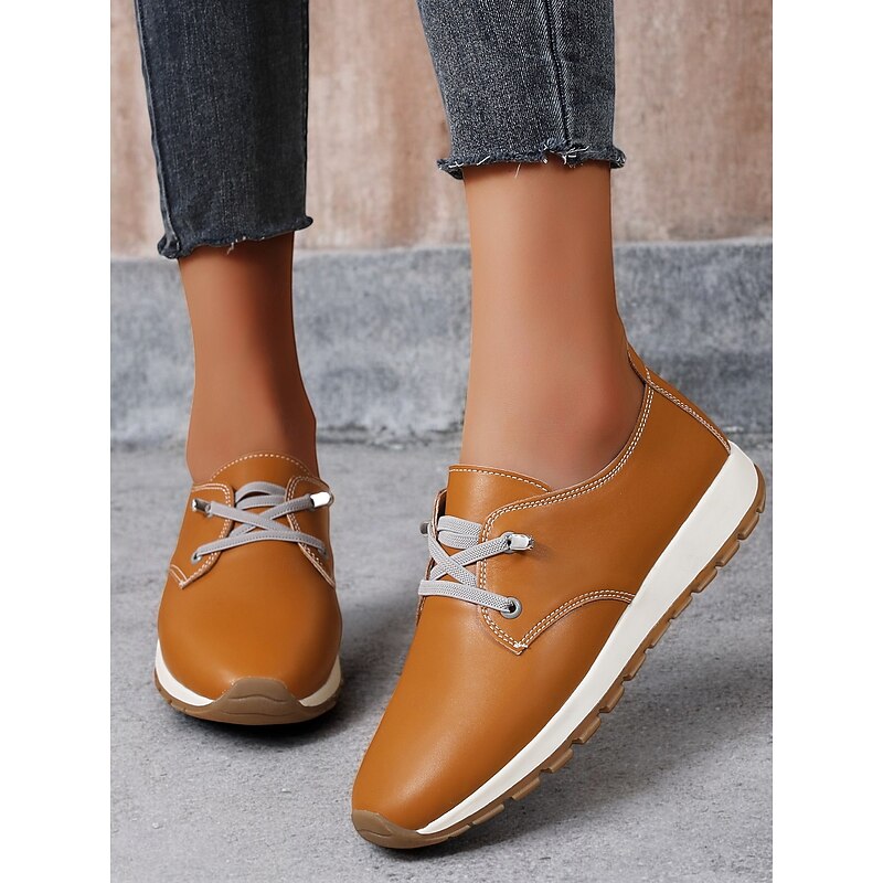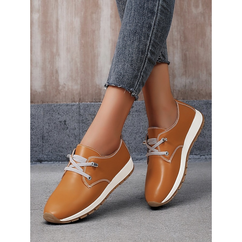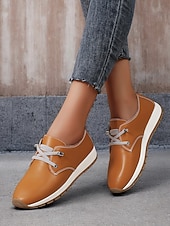 HOT ! Women's Brown Faux Leather Lace-up Sneakers - Perfect for Walking and Casual Occasions