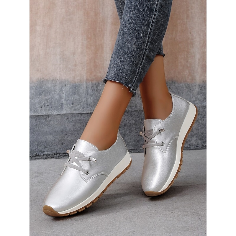 More information about Women's Brown Faux Leather Lace-up Sneakers - Perfect for Walking and Casual Occasions