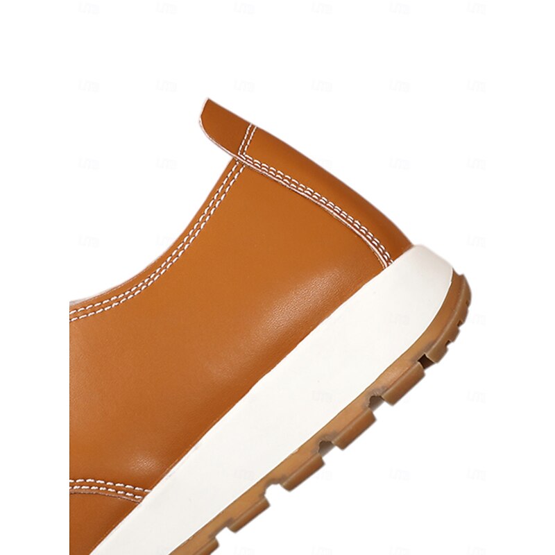 Women's Brown Faux Leather Lace-up Sneakers - Perfect for Walking and Casual Occasions 5