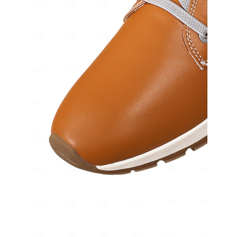 Women's Brown Faux Leather Lace-up Sneakers - Perfect for Walking and Casual Occasions 22