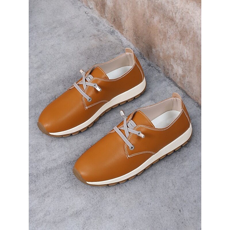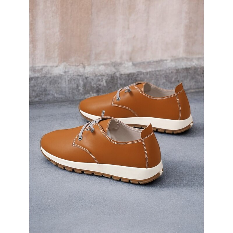 Women's Brown Faux Leather Lace-up Sneakers - Perfect for Walking and Casual Occasions 24