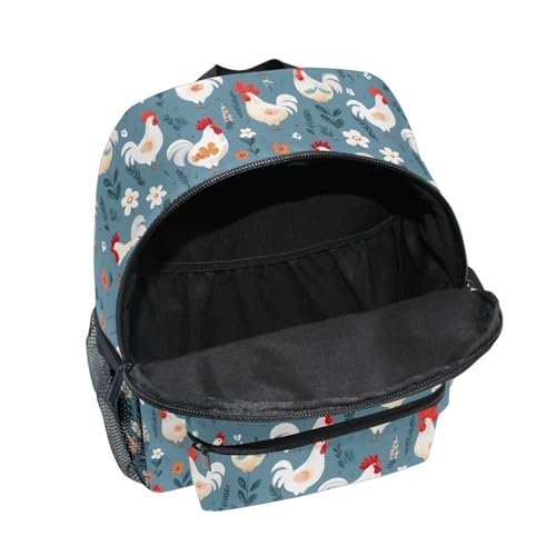 panksolu Cute White Chicken Rooster Toddler Backpack for Boys Girls,Kid Backpack with Chest Clip and Name Tag, S 7
