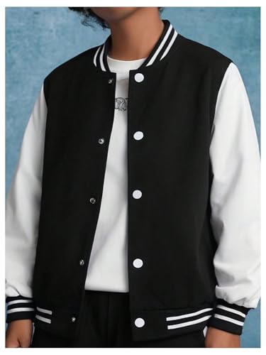 MakeMeChic Boy's Varsity Baseball Bomber Jacket Striped Long Sleeve Color Block Button Down Coats 6