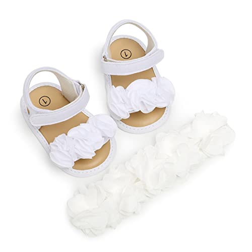 Satin Flower Headbands & Barefoot Sandals For Baby Girl Baby Toddlers Solid Color With Ankle Strap Flats Shoes 6