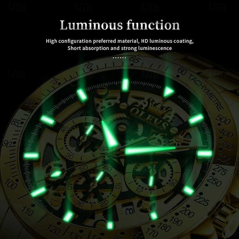 More information about OLEVS 9913 Men Watch Sport Business Hollow out Waterproof Luminous Stainless Steel Chronograph Top Luxury Gold Quartz Men Watch
