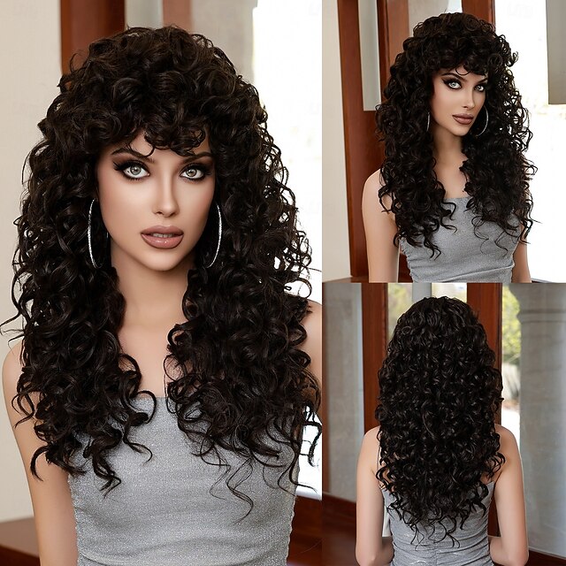 More information about Synthetic Wig Uniforms Career Costumes Princess Curly Deep Curly Middle Part Layered Haircut With Bangs Machine Made Wig 26 inch Dark Brown Synthetic Hair Women's Cosplay Party Fashion Dark Brown