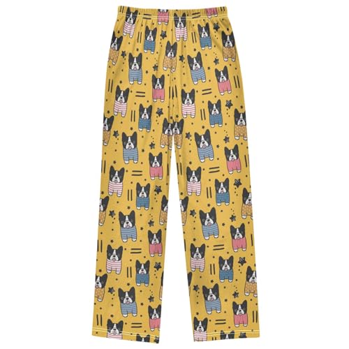 Boy's Pj Pants Cartoon Bulldog Yellow Lounge Bottoms Elastic Kids Sweatpants Joggers with Pockets Size 6-14 7