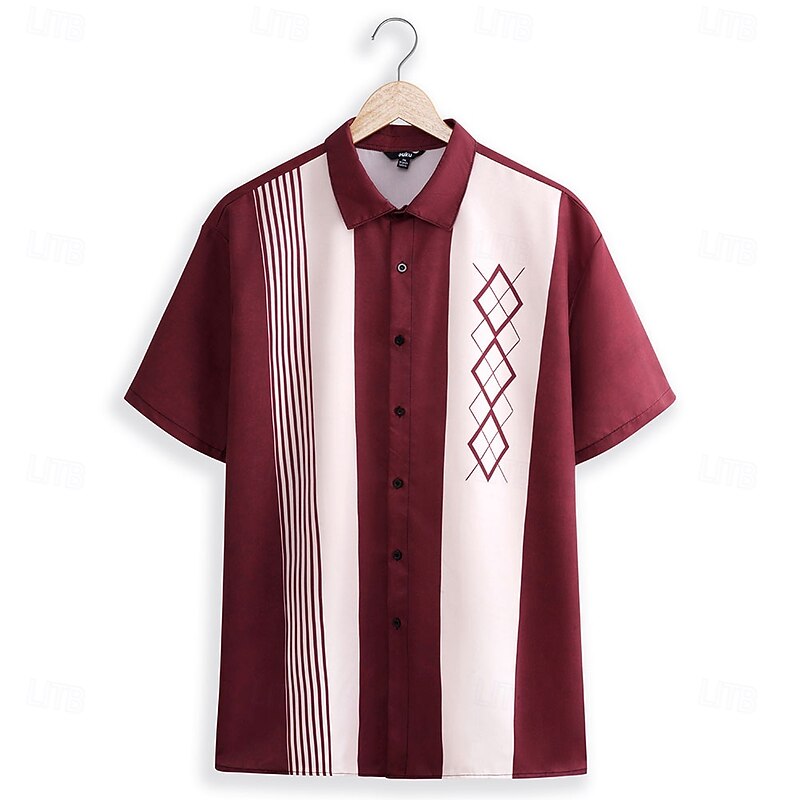 More information about Men's Striped Geometric Pattern Geometry Shirt Bowling Shirt Button Up Shirt Short Sleeve Fashion Streetwear Designer Street Daily Going out Summer Spring Turndown Print Apricot Wine Blue Gray