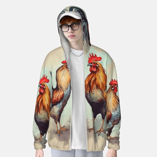 HOT ! Rooster and Hen Sun Protection Hoodie Jacket UPF 50+ Full Zip Long Sleeve Sun Shirts with Pockets Rash Guard