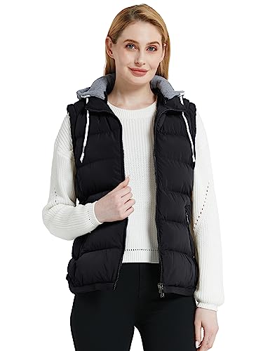 • Stylish Women Vest - The puffer coat features a removable gray hood with adjustable drawstring,2 big zipper side pockets and 1 deep inside chest pocket.You can remove the hood to match your dress,sweaters,long or short sleeve shirts to show your unique style.