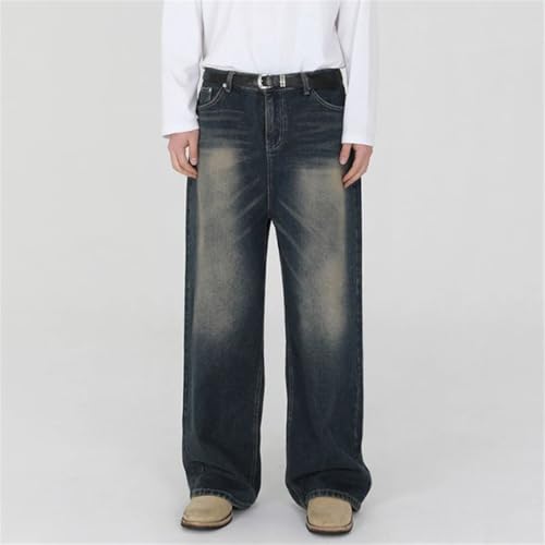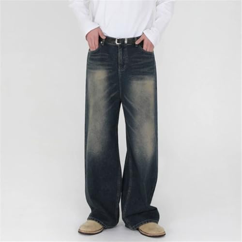 HOT ! Men's High Street Denim Pants Washing Vintage Bottom Straight Wide Leg Jeans