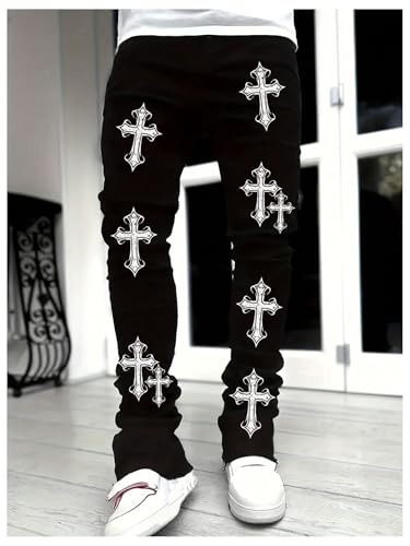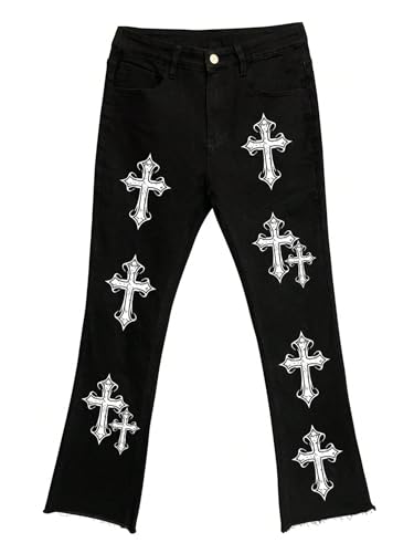 More information about WDIRARA Men's Cross Graphic Jeans Raw Hem Long Denim Pants Streetwear