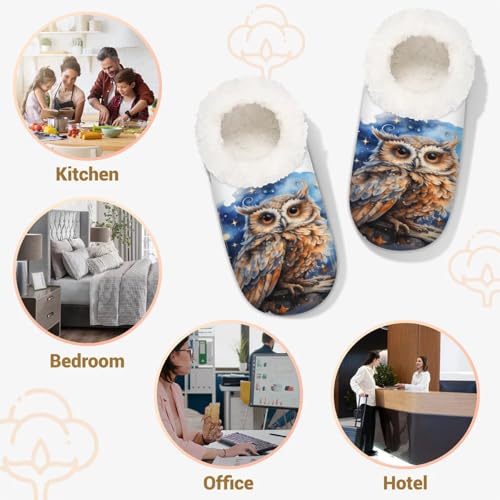 Funny Owl Women's Slippers Socks Cozy Fuzzy Sherpa House Shoes Winter House Bedroom Slippers Owl Moon Good Night 7