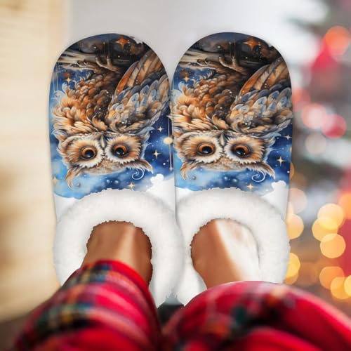 HOT ! Funny Owl Women's Slippers Socks Cozy Fuzzy Sherpa House Shoes Winter House Bedroom Slippers Owl Moon Good Night