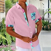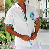 More information about Men's Floral Coconut Tree Palm Tree Summer Hawaiian Shirt Aloha Shirt Printed Shirts Short Sleeve Shirt Turndown Hawaiian Resort Outdoor Vacation Party White Pink Green S M L