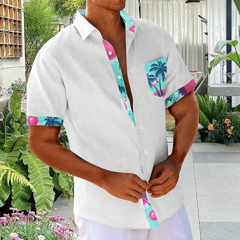 Men's Floral Coconut Tree Palm Tree Summer Hawaiian Shirt Aloha Shirt Printed Shirts Short Sleeve Shirt Turndown Hawaiian Resort Outdoor Vacation Party White Pink Green S M L