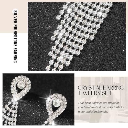 Unicra Long Tassel Rhinestone Earrings Silver Diamond Dangle Earrings Jewelry Sets Crystal Bridal Wedding Earrings Accessories for Women and Brides 6