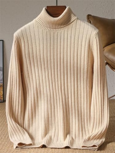 DBFBDTU Mens Wool Knit Pullover Turtleneck Thick Sweater Business Casual Long Sleeve Tops Loose Warm 3
