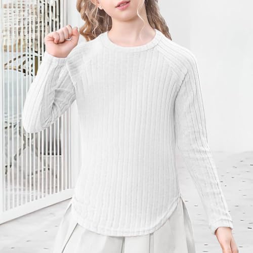 More information about Long Sleeve Shirt Girls Relaxed Fit Round Neck Knit Pullover Tops Soft Loose Hem Split Spring Fall Outfits T-Shirts