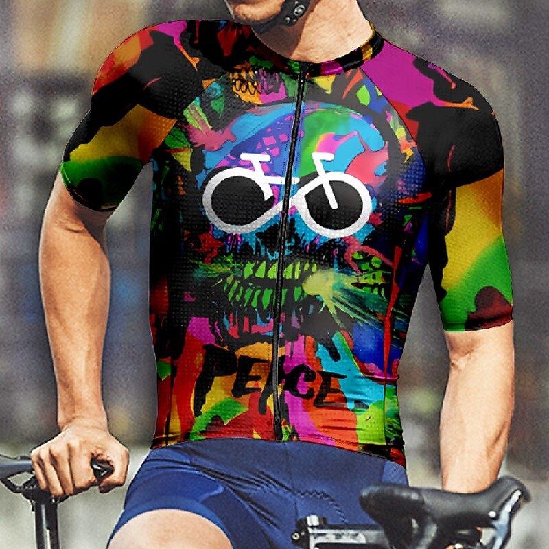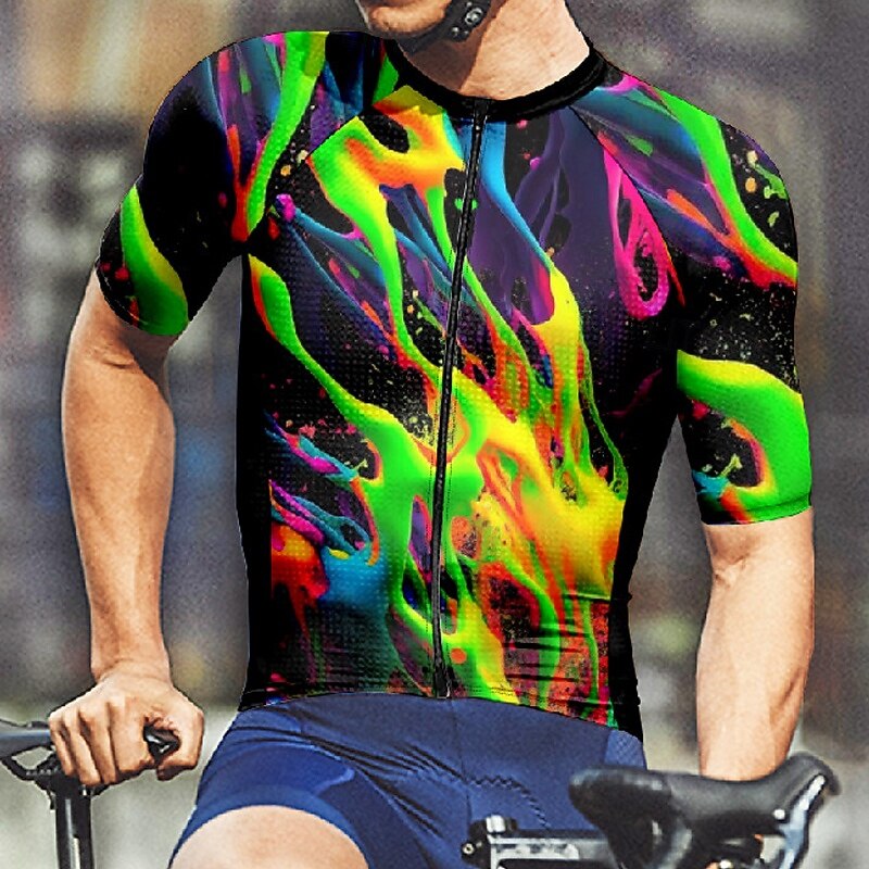 Men's Cycling Jersey Graphic Graffiti Short Sleeve Bike Tee Tshirt Jersey with 3 Rear Pockets Mountain Bike MTB Quick Dry Anatomic Design Wicking Breathable Sports Blue Green Clothing Apparel 15