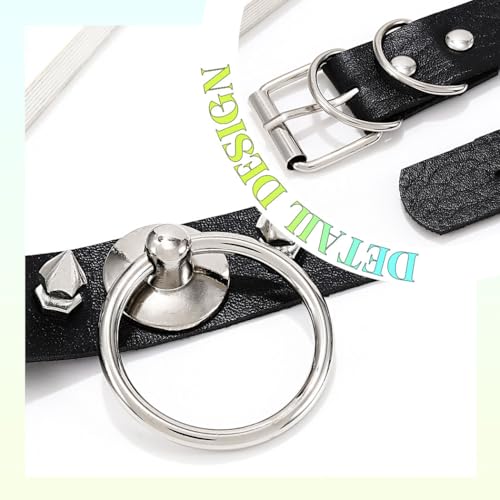 ACEDRE Spiked Leather Choker Black Studded O Ring Goth Collar for Women and Men 4