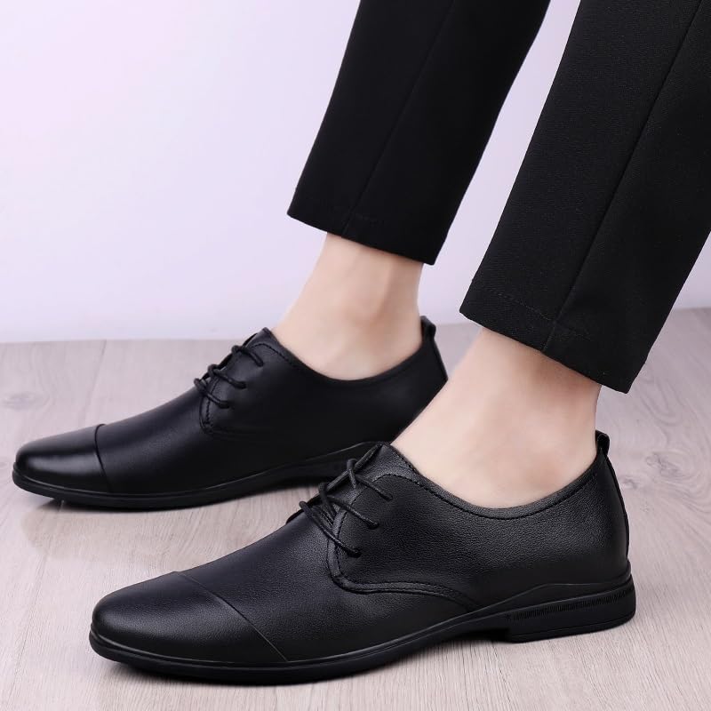 Dress Oxford for Men Lace Up Solid Color Round Toe Cap Toe Derby Shoes Low Top Block Heel Rubber Sole Slip Resistant Anti-Slip Wedding 6
