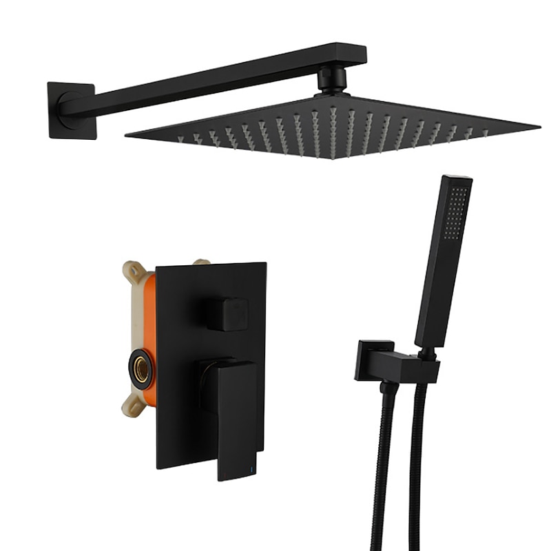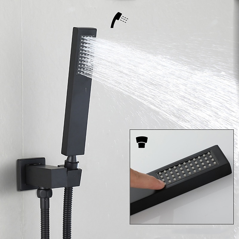 More information about Concealed Shower Faucet Combo Set Black, 8"/10"/12"Ultra Thin Top Head Shower System Mixer Rough In Valve Rainfall High Pressure Head with Handheld, Wall Monted Tub and Shower Trim Kit Bathroom Bath