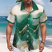 More information about Men's Geometric Marble Abstract Art Shirt Button Up Shirt Short Sleeve Fashion Casual Vacation Streetwear Beach Wear Summer Fall Turndown 3D Print Collared Shirts Front One Pocket Green