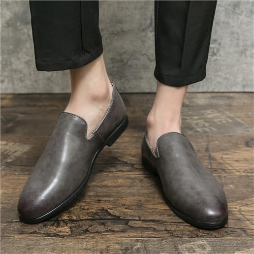 Oxford Formal Shoes for Men Slip On Pointed Burnished Toe Vegan Leather Block Heel Non Slip Low Top Working 6