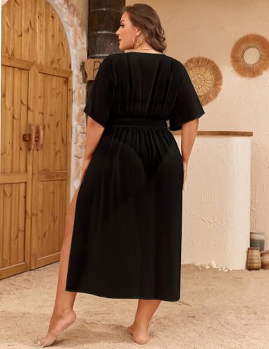 SWOMOG Women Plus Size Swimsuit Cover Up Bikini Bathing Suit Sexy Deep V Neck Swim Beach Dresses Summer Beachwear 4