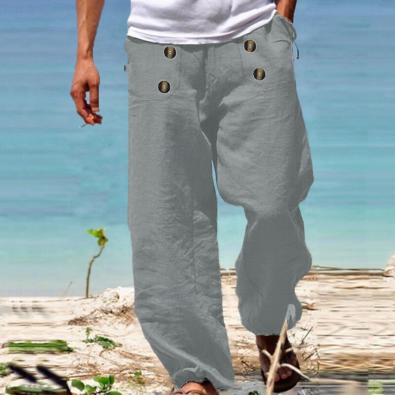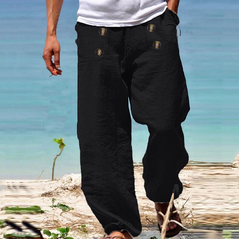 More information about Men's Linen Pants Trousers Summer Pants Beach Pants Gauze Pants Buttons Drawstring Elastic Waist Plain Comfort Breathable Full Length Daily Holiday Beach Vacation Fashion Black White