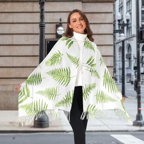 ALAZA Women's Scarves Winter Scarf Cashmere Feel Pashmina Shawls Wraps Fern Pteridophyte Soft Warm Lightweight with Tassels Fall 2
